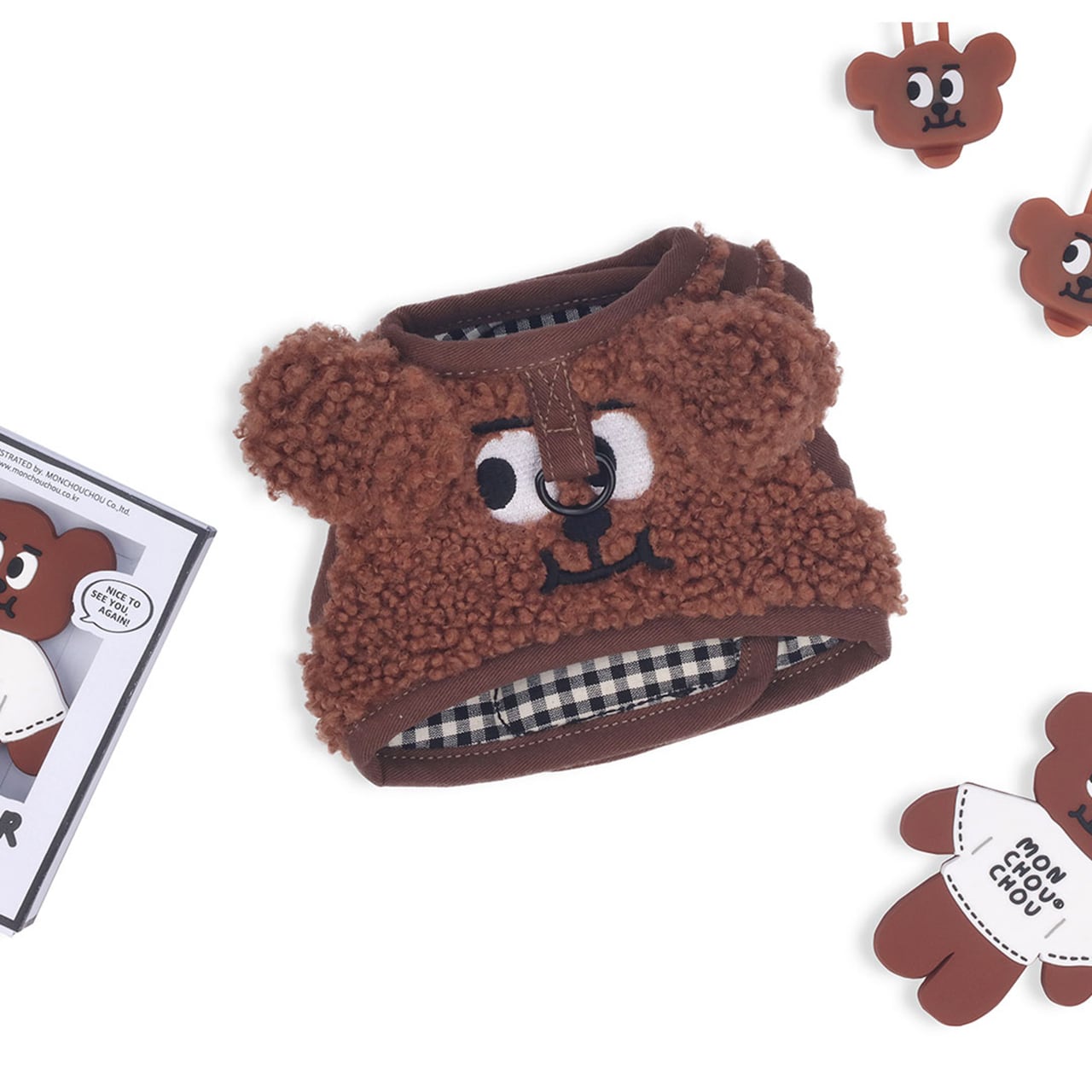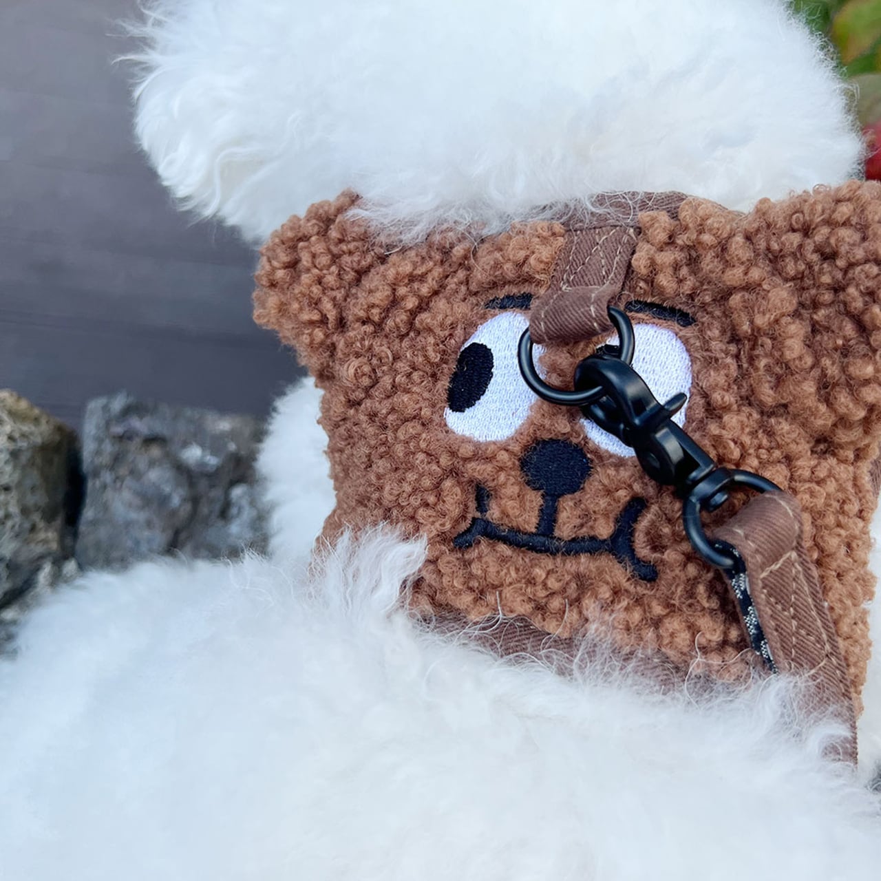 可愛らしいダンベアフェイスのファーハーネスです。シンプルなマジックテープの採用で着脱がより快適になり、シリコンマジックテープを使用することでマジックテープが柔らかくなり、長期間の使用や洗濯後も優れた粘着力を維持します。リーシュは8層の丈夫なキャンバス地で縫製されており、とても頑丈でグリップ力に優れています。