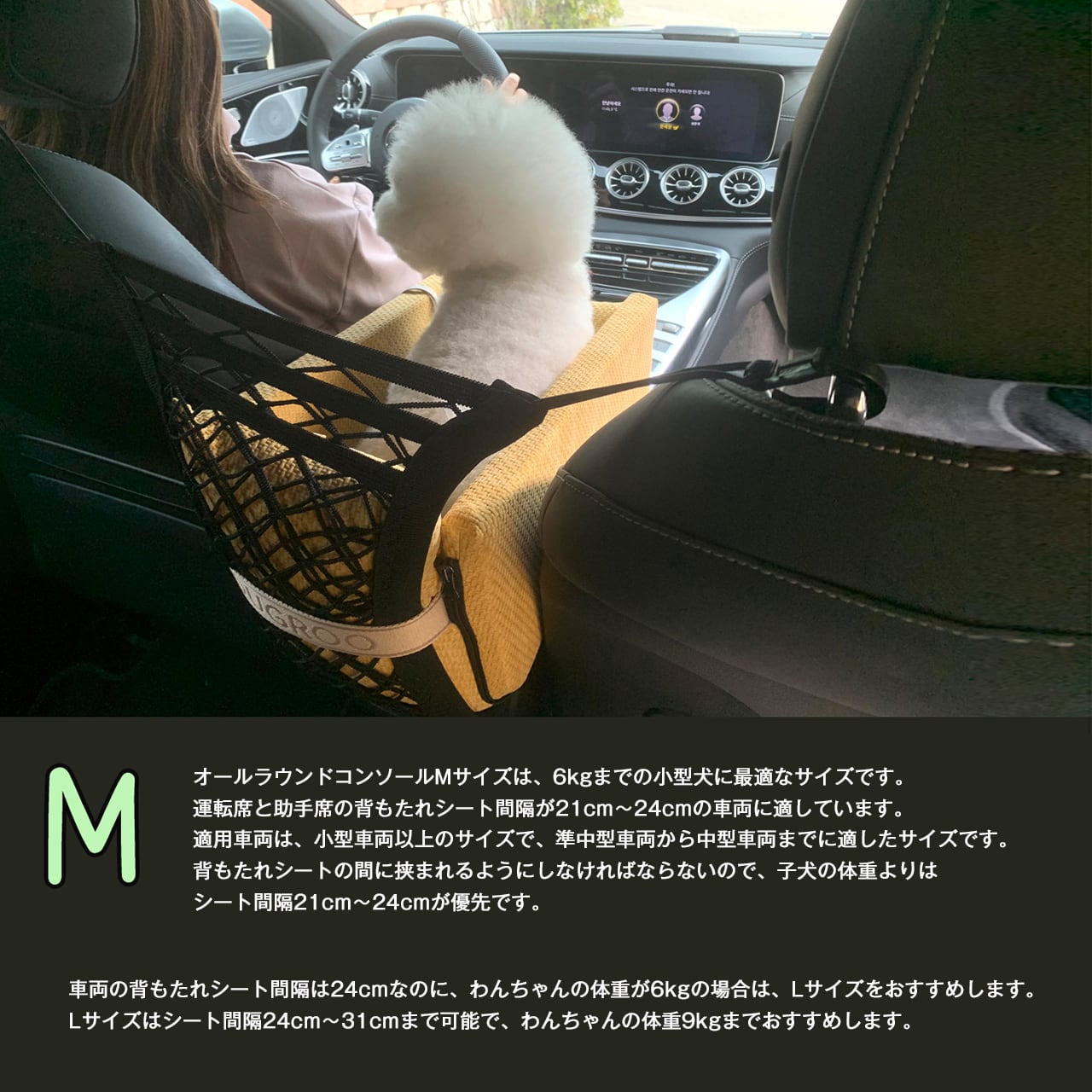 ご注意)運転席と助手席のシート間隔が24〜31cmの車両はタイプはLサイズ(9kg未満のペットにおすすめ)となります。「All Round Console Box Car Seat -L Size」をご購入ください。