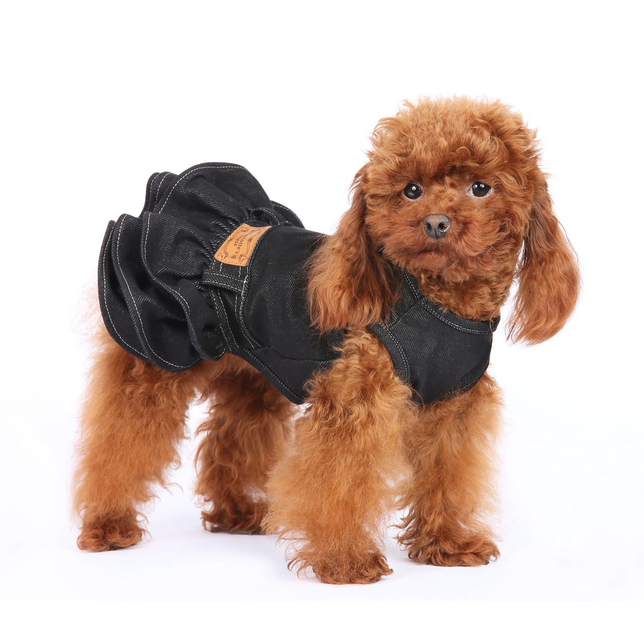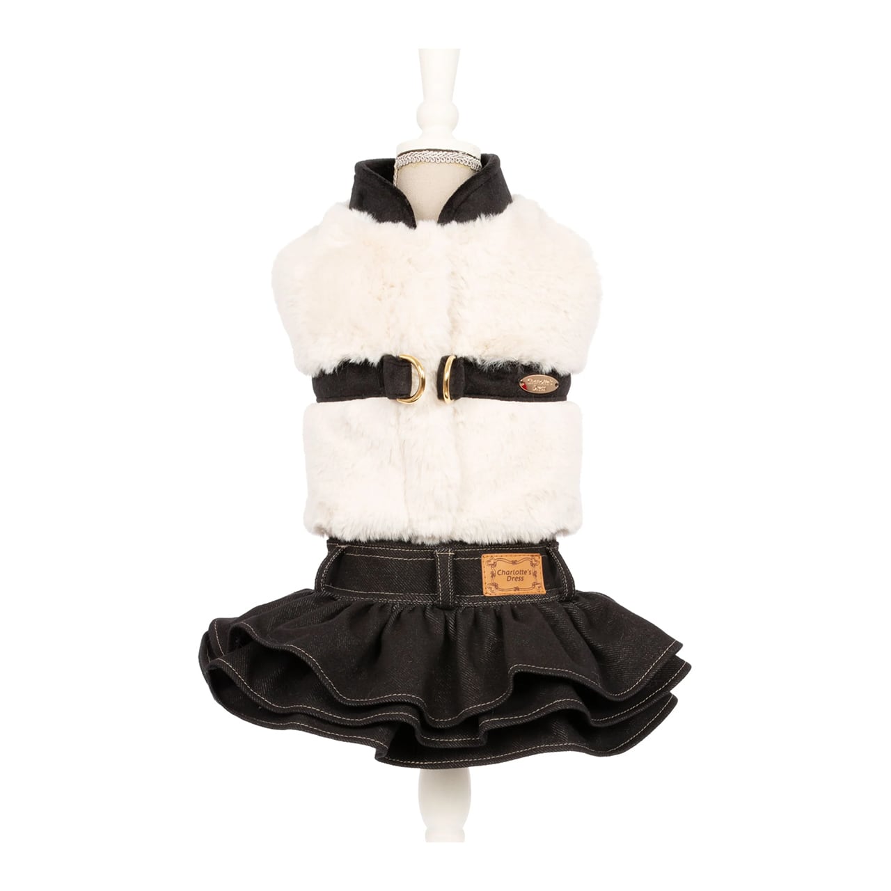 最高にクールなストレッチデニムドレス♡マルチフリルスカートでカジュアルさに可愛さをプラス!※ 白いファーハーネスは、Art. 9026 harness jacket Bellamiを合わせております。